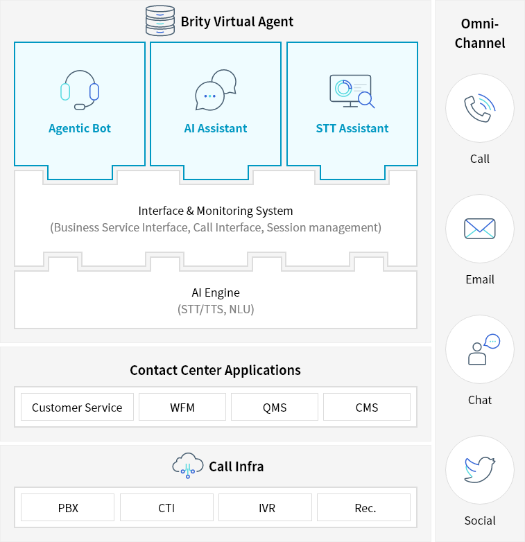 By utilizing the proven Brity Virtual Agent platform, which is already selected and used by many customers, it can be extended and applied to various contact centers.