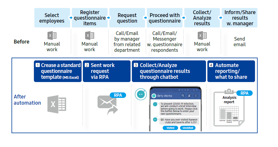 Therefore, Samsung SDS has introduced Brity RPA/Assistant in order to automate the emergency response questionnaire.