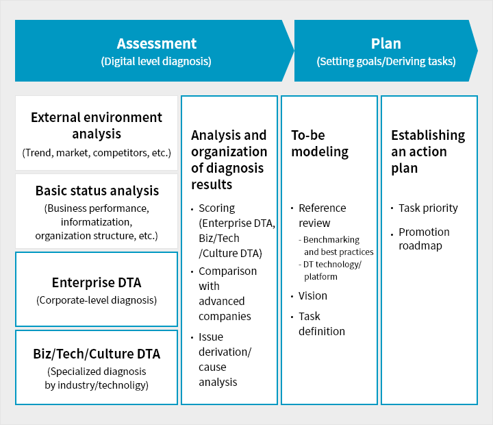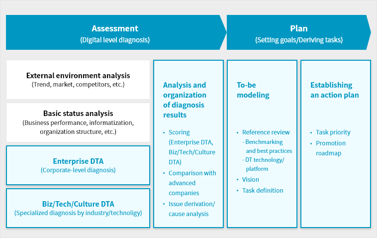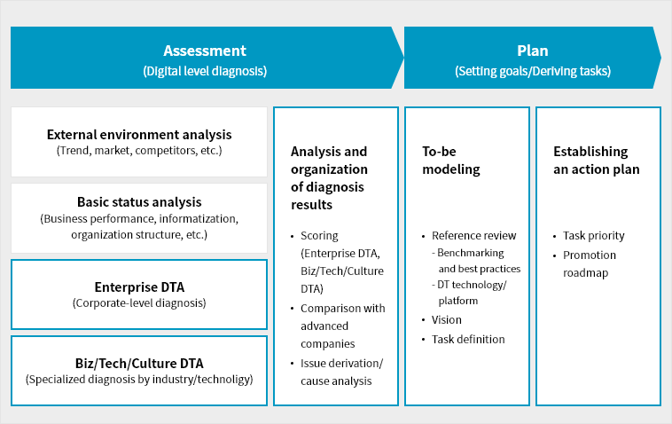 - We implement a seamless value chain by designing a process in which people, robots, and new technologies work together organically, and support DT strategies, processes, and new IT technologies to be internalized in corporate culture through change management.