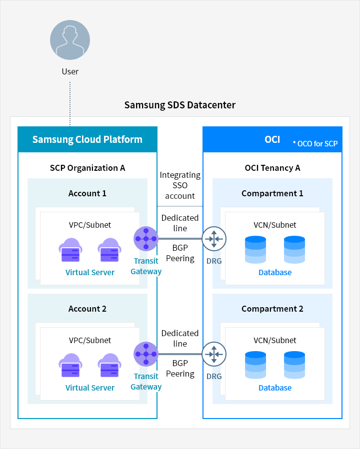 As OCI services offered by SCP is connected to SCP resources via with a high-speed and reliable line, it ensures a secure and reliable OCI environment in Samsung SDS datacenter.