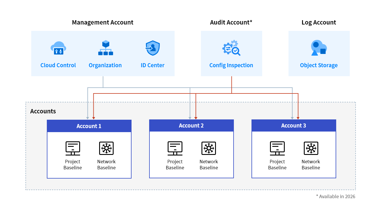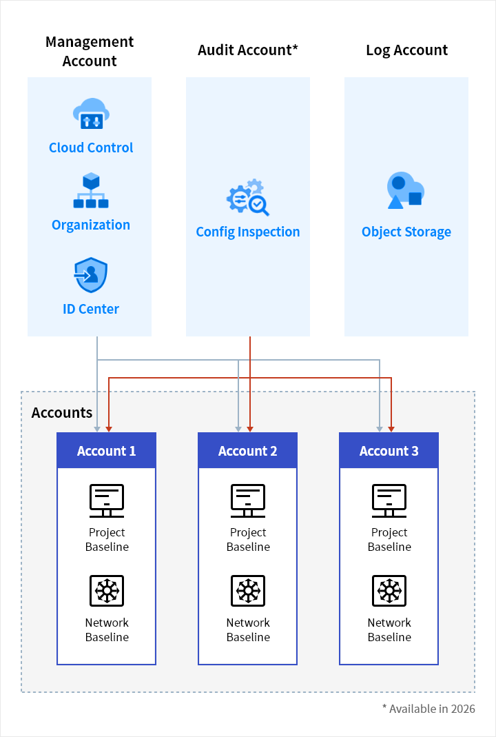 - Provides centralized log storage and analysis for all accounts through Logging&Audit and Object Storage