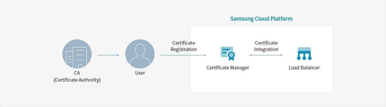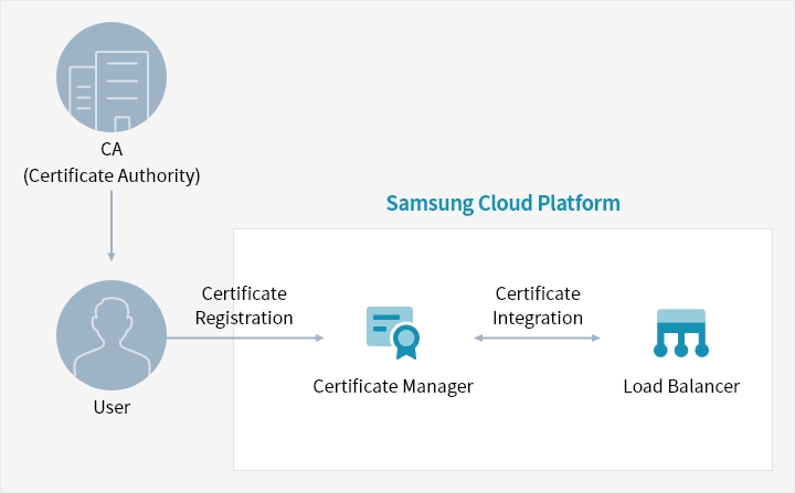 SSL/TLS certificates issued by an external institution can be registered/deleted, and validity of certificates is checked for registration. Users can configure HTTPS for Load Balancer using certificates registered with Certificate Manager.