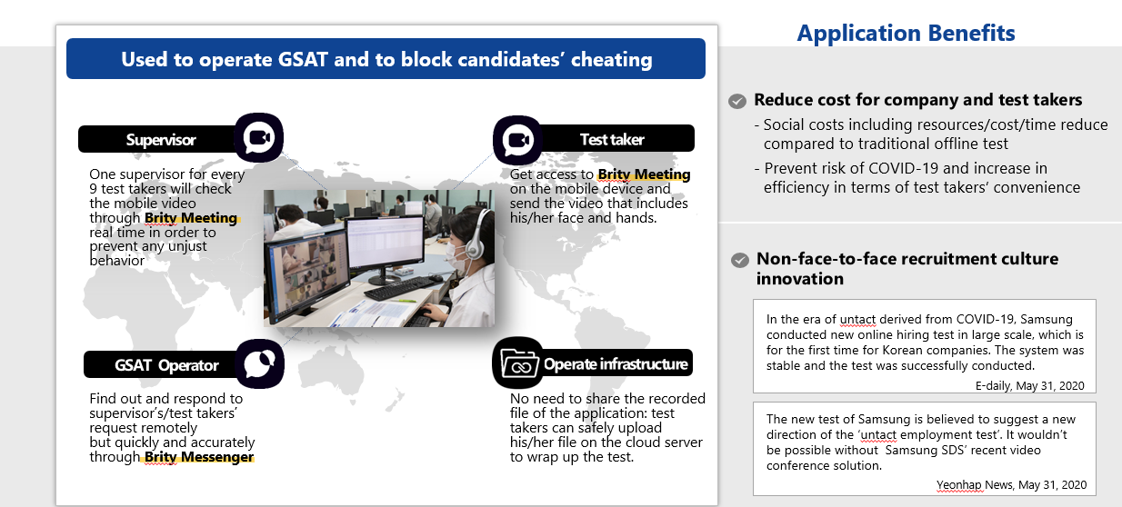 ""In the era of untact derived from COVID-19, Samsung conducted a new online hiring test in large scale, which is for the first time as a Korean company. The system was stable and the test was successfully conducted. (E-daily, May 31, 2020)""