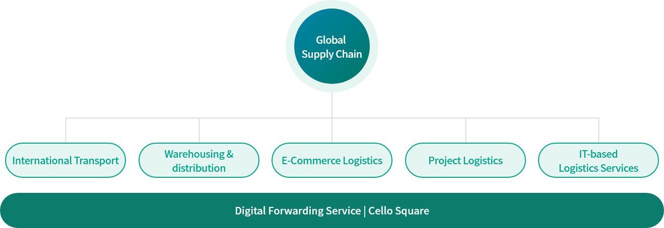 Global Supply Chain: International Transport, Warehouse & Inland Transport, E-Commerce Logistics, Project Logistics, IT-based Logistics Services