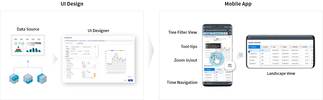 Administrators can easily create data model and UI using Self-Service BI and data refined in global SaaS platform (o9)