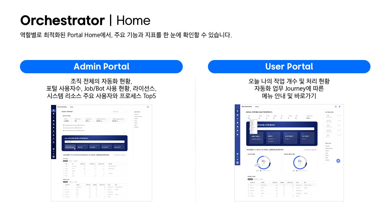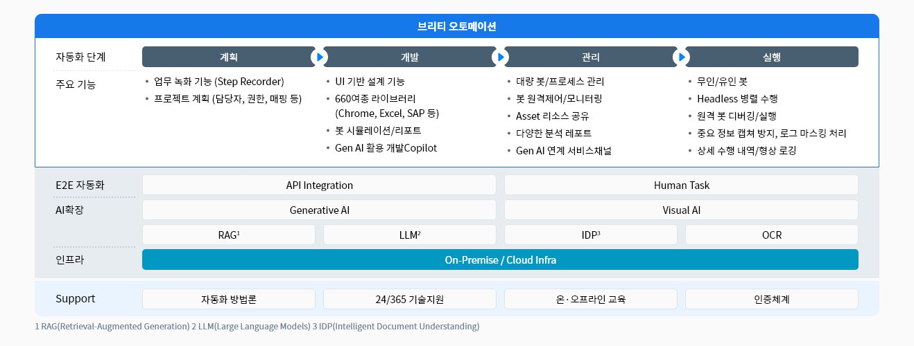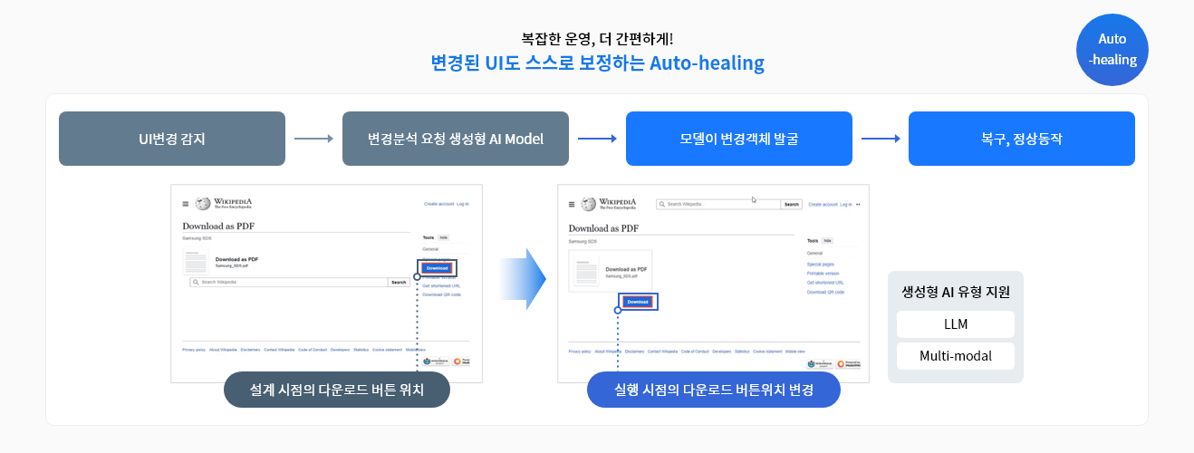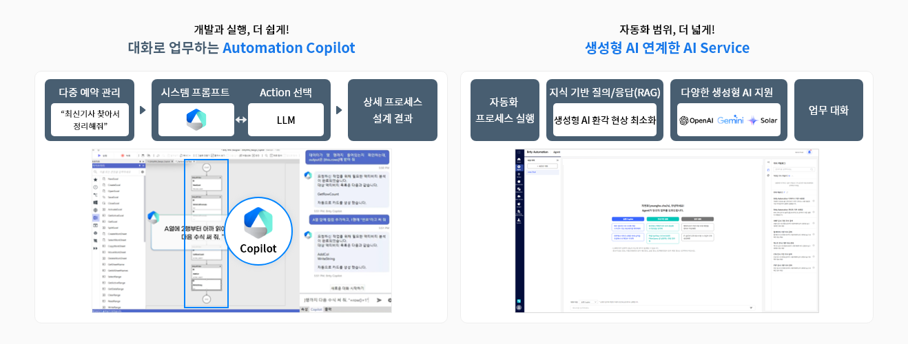 정형화된 절차만 수행하던 RPA를 넘어, 복잡하고 예측하기 어려운 상황에도 대응하며,다양한 문서를 스스로 이해하고 처리하거나, 실행 오류를 감지해 자율적으로 복구하는 등사람과 함께 능동적으로 협업하는 새로운 형태의 업무 자동화를 실현합니다.