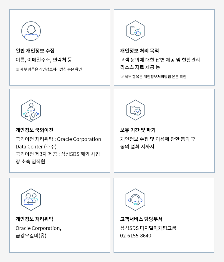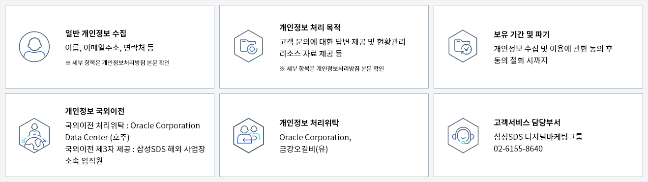 삼성SDS는 서비스 제공을 위해 필요 최소한의 범위에서 개인정보를 수집・이용합니다.