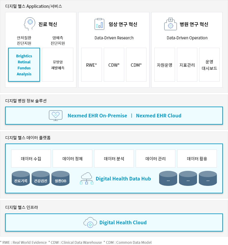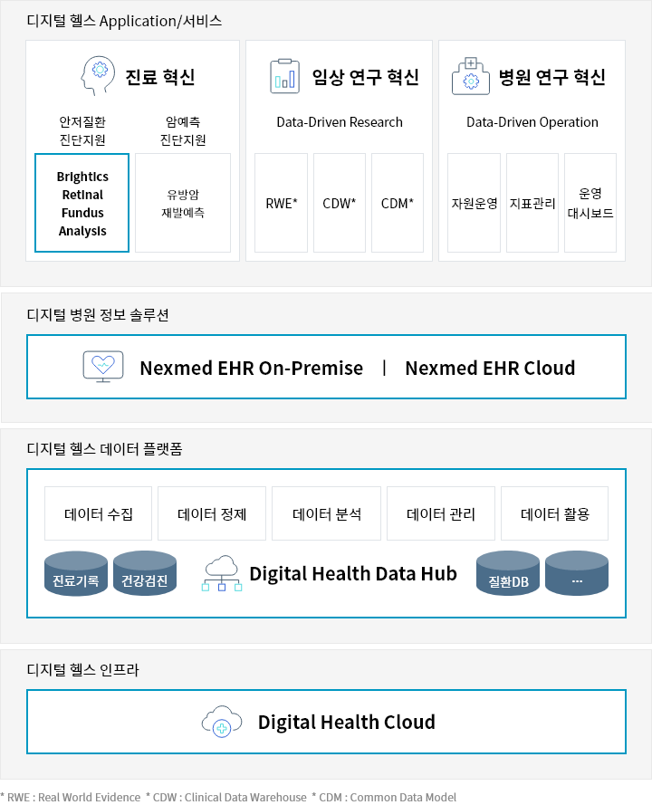 * RWE : Real World Evidence * CDW : Clinical Data Warehouse * CDM : Common Data Model