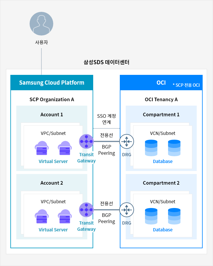 SCP 고객은 SCP의 계약 정보를 이용하여 기존의 SCP 리소스와 통합하여 OCI를 관리할 수 있으며, OCI 사용 비용은 SCP를 통해 간편하게 통합 청구됩니다.