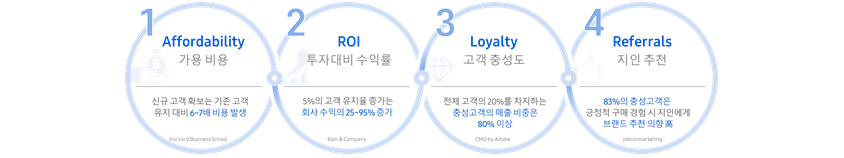 리텐션 마케팅이란 기존에 보유한 고객의 이탈을 최소화하고 유지율을 높이는 마케팅 방식입니다. 가용 비용(Affordability), 투자 대비 수익률(ROI), 고객 충성도(Loyalty), 지인 추천(Referrals) 관점에서 비즈니스의 성장과 성공에 중요한 역할을 담당합니다.