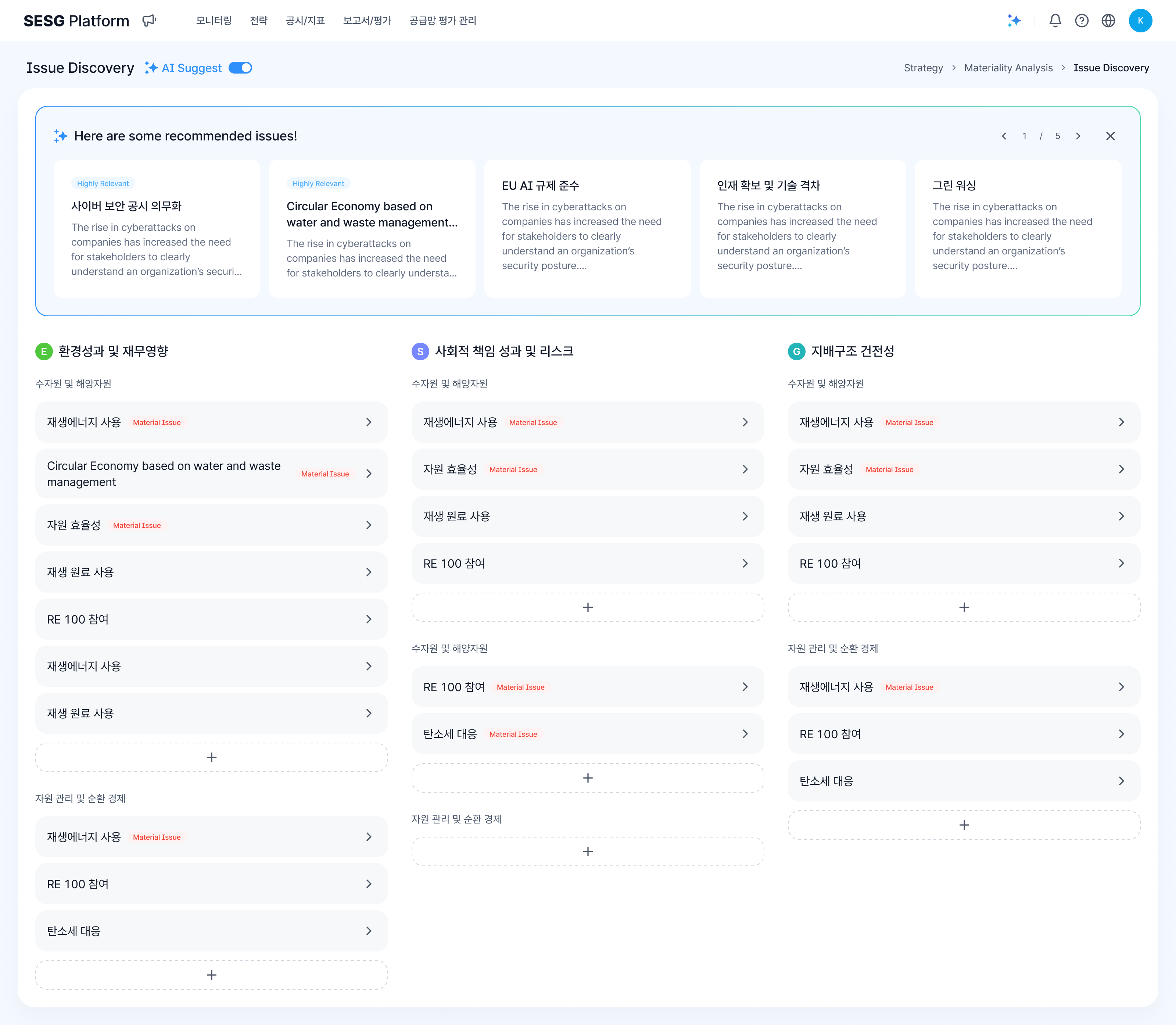 따라서 삼성SDS 등 글로벌 IT 기업은 ESG 데이터 통합 관리 체계, 온실가스 관리 시스템, 공급망 관리 솔루션 등 다양한 제품 및 솔루션을 출시하고 있습니다. 디지털 역량을 통해 글로벌 기업이 글로벌 규제 환경에 대응할 수 있는 시스템 마련을 지원하기 위한 목적입니다.