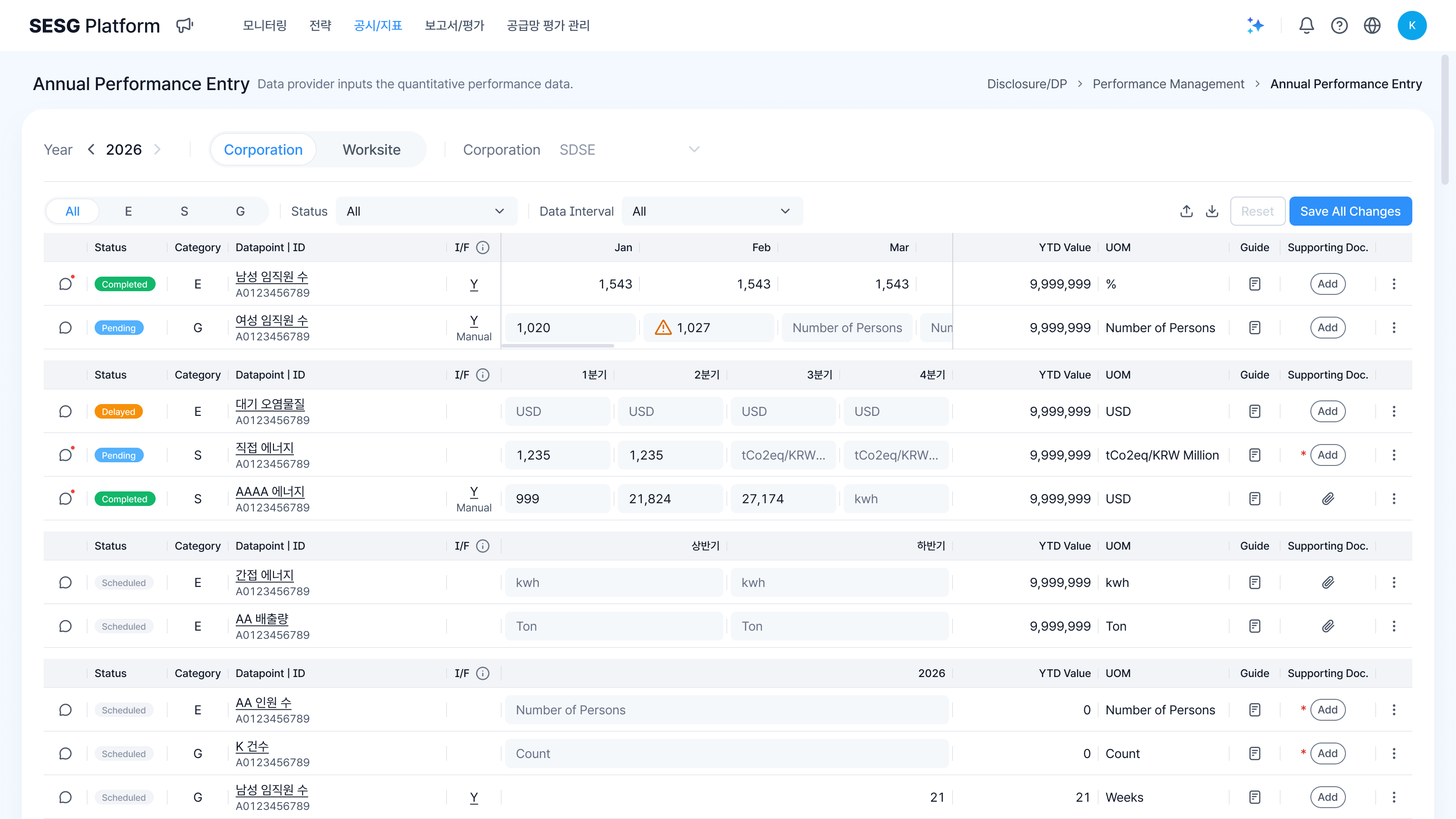 아울러, 상술한 바와 같이 ESG 공시는 연결 기준을 요구하고 있습니다. 이는 해외법인과 자회사 등의 데이터도 함께 관리해야 함을 의미합니다. 이에, 공시는 다수 국가의 상이한 기준 및 단위를 통합하여 일관된 구조를 갖추도록 해야 하며, 광범위한 범위의 데이터를 포함하여야 합니다.