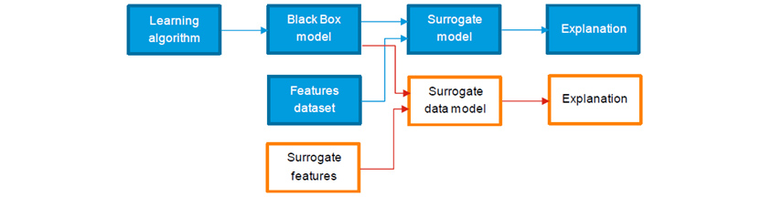 Surrogate Model은 복잡하고 거대한 원본모델을 해석 가능하고 설명 가능할 수 있도록 모방된 모델입니다. 원본모델의 특성에 대해 최대한 해석 가능하면서 또한 설명 가능하도록 하기 위해서는 원본모델이 학습한 데이터를 사용하고, Linear Regression이나 Decision Tree 등과 같은 그 자체로 설명이 용이한 알고리즘을 사용하여 대리모델을 생성합니다. 또한, 모델의 예측 결과에 대해서 영향을 주는 변수(Feature)를 설명해야 하기 때문에 원본모델에서 산출된 예측 결과값을 가지고 근사한 결과가 산출되도록 모델을 학습하는 과정을 거치게 됩니다. 실제 응용사례를 살펴보도록 하겠습니다.
