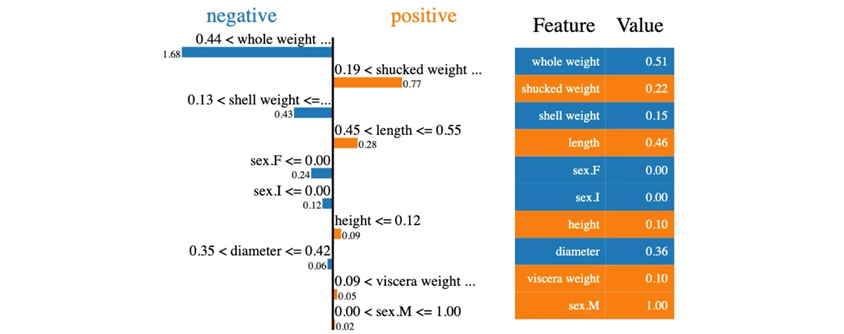 [그림 3]은 LIME을 사용하여 XGBoost Regression 모델의 결과를 분석한 예시입니다. 모델의 개별 예측 결과에 대해 설명하면서 음의 영향을 주는 변수는 파란색, 양의 영향을 주는 변수는 주황색으로 표현되었습니다. 이를 통해, 분석가는 모델이 어떻게 특정 예측에 도달했는지를 이해하고 그 과정을 설명할 수 있습니다.