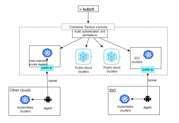 Kubernetes를 중심으로 AWS·Azure·Google Cloud 등 여러 클라우드를 단일 실행·운영 레이어로 통합한 멀티 클라우드 관리 아키텍처