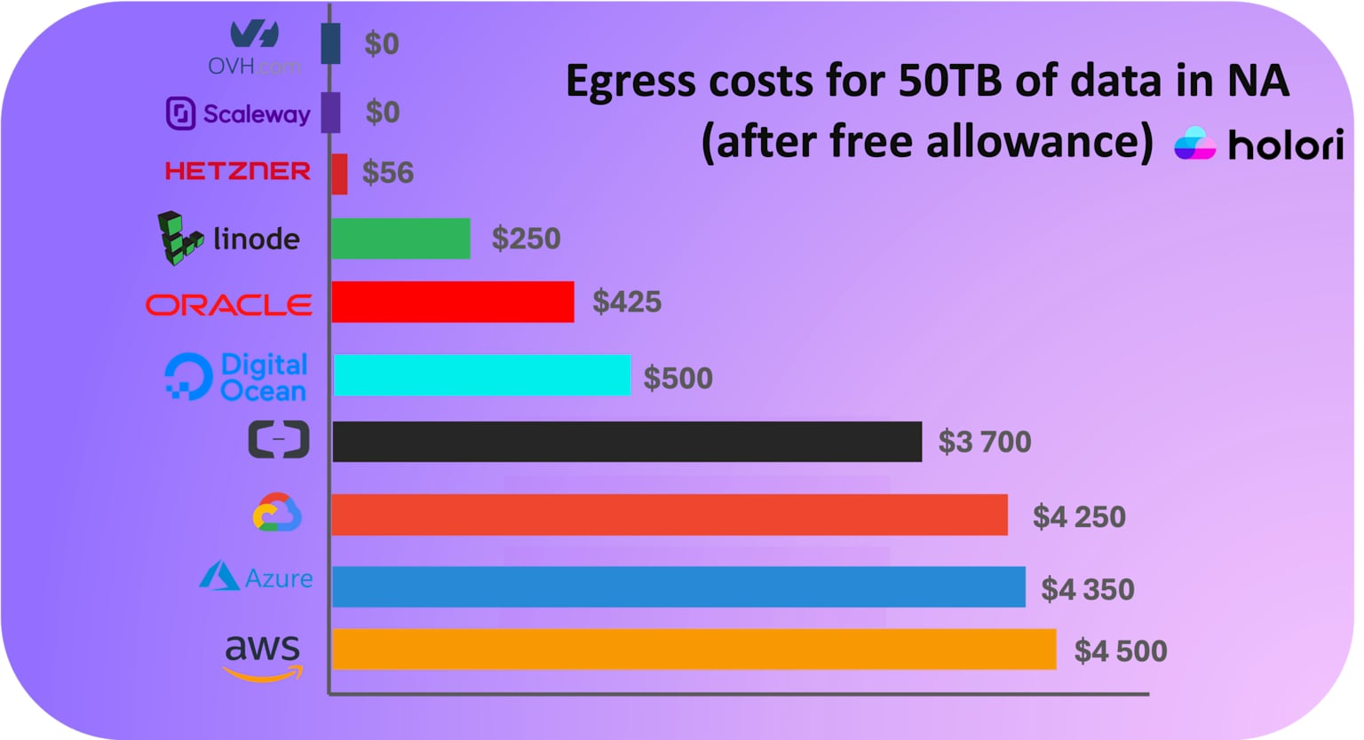 메이저 클라우드 사업자의 이그레스 비용 비교 차트