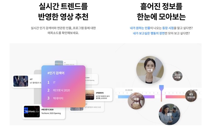 삼성SDS Brightics Visual Search는 영상 속에서 특정 인물, 행동, 상품, 객체, 배경, 음악, 장면 전환, 동일 장면 등이 나오는 시점을 찾아주고, 섬네일과 미리 보기 영상을 자동으로 생성해 주는 기능을 가지고 있습니다. 이에 더해 최근 Visual Search는 숏폼(Short form) 영상을 자동 생성할 뿐만 아니라, 완성된 영상에 제품 이미지를 삽입해 광고용 영상을 제작하는 기능으로 한 단계 진화하고 있습니다.
