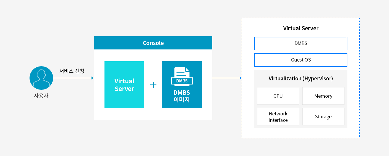 Red Hat Enterprise Linux 운영 체제 기반의 기 설치된 DBMS 이미지를 제공하며, 복잡한 추가 작업 없이 운영 체제(OS) 이미지 생성 즉시 선택한 DBMS를 사용할 수 있습니다.