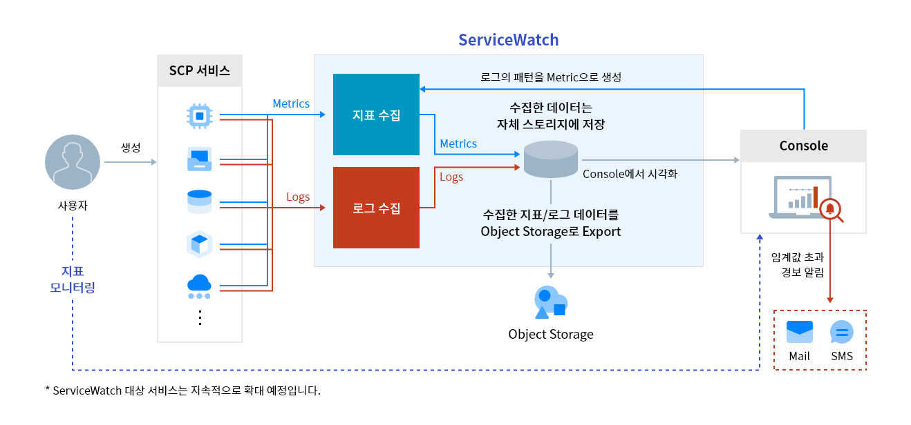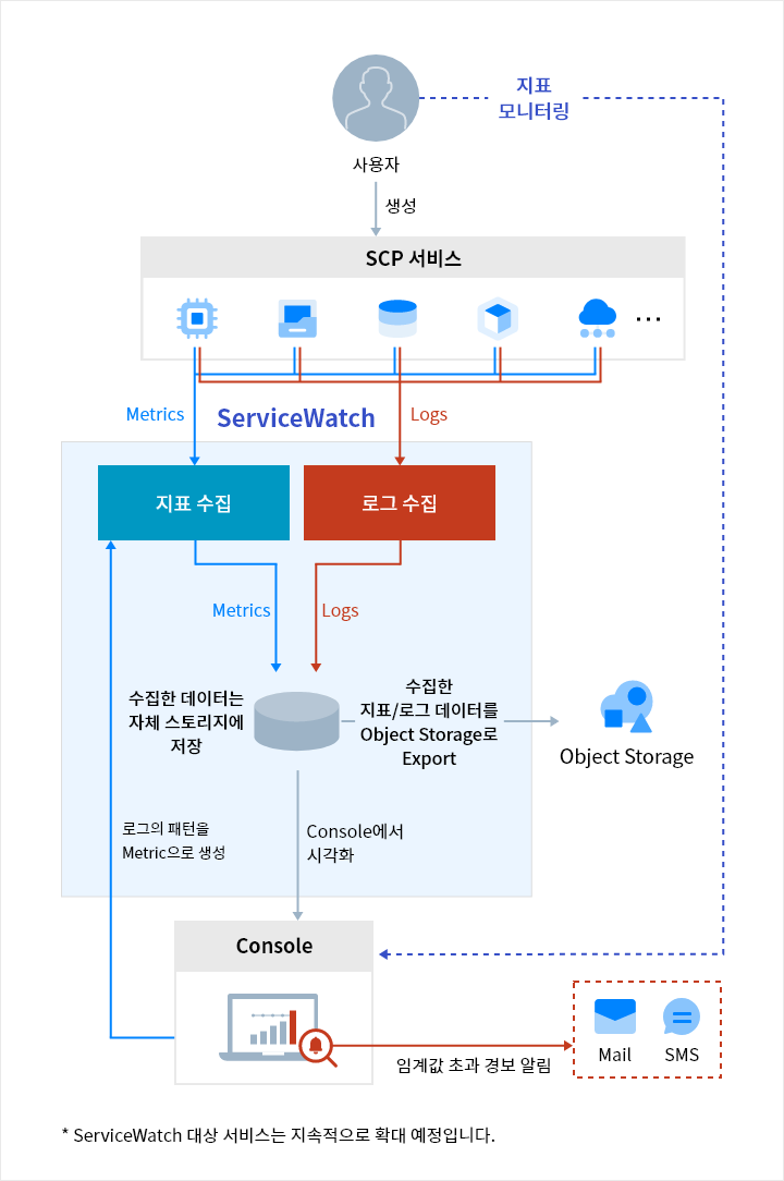 ServiceWatch는 사용한 만큼 비용을 지불하는 유연한 요금제를 제공하여 비용 효율적으로 사용할 수 있습니다. 또한, 무료 이용 구간을 제공함으로써 무료로 우선 사용해 보고 저장 기간과 용량을 필요한 만큼 유료로 확장할 수 있습니다.