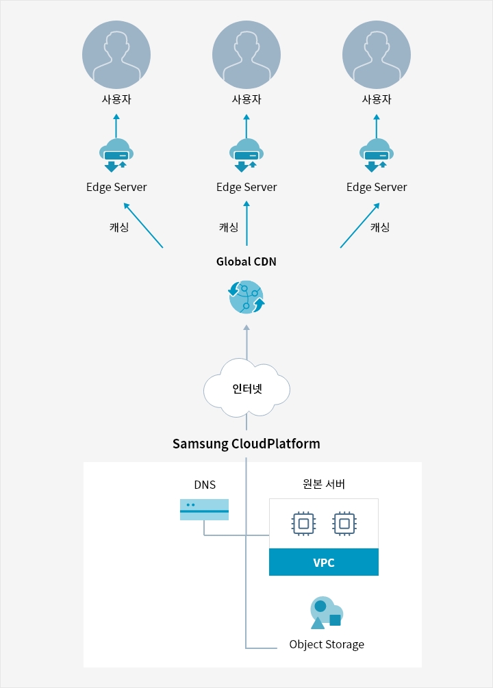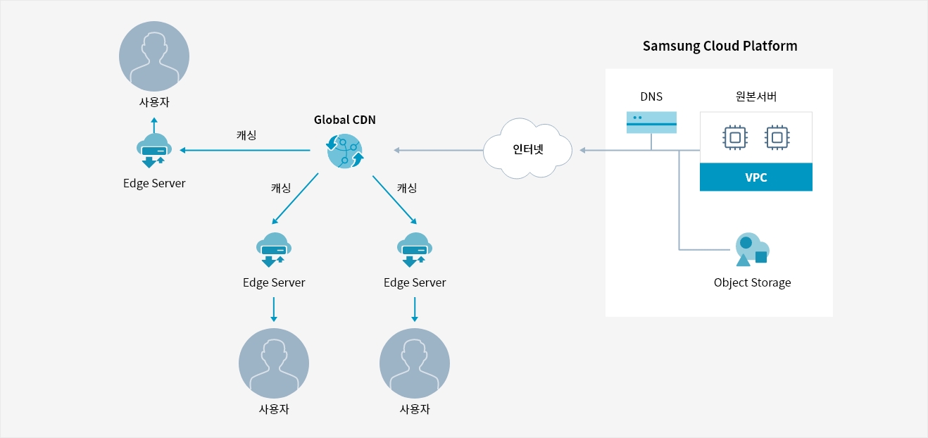 삼성 클라우드 플랫폼 (Samsung Cloud Platform, SCP)의 웹 기반 콘솔을 통해 편리하게 글로벌 CDN 서비스를 신청할 수 있습니다. 삼성 클라우드 플랫폼 (Samsung Cloud Platform, SCP)의 원본 서버 설정과 글로벌 CDN 엣지 서버의 캐싱 정책 설정을 간편하게 할 수 있어 신속한 콘텐츠 전송 서비스 이용이 가능합니다.