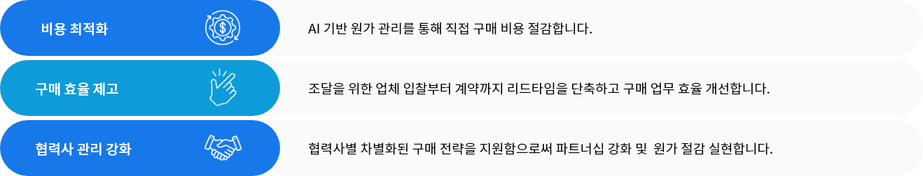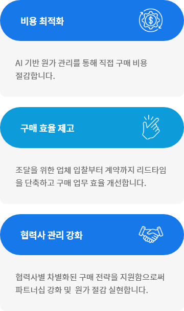 비용 최적화: AI 기반 원가 관리를 통해 직접 구매 비용 절감합니다.