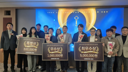 이와 함께 네 건의 아이디어가 특별상으로 선정되었습니다. 먼저 특별상 부문 첫번째 수상자는 AI생산성혁신그룹(경영혁신) 오지은 프로입니다. 지하식당의 종이봉투 감축을 위한 ‘4가지 임직원 참여형 순환경제 캠페인’을 제안했습니다. 두 번째 특별상 아이디어는 클라우드MI그룹(클라우드서비스) 김춘도 그룹장, G-CSP SA그룹(MSP사업) 김병주, 최희원, 윤수영 프로의 제안이 선정되었습니다. 기존 이메일 서버에 AI기능을 확장한 ‘이메일 자가삭제 툴’을 탄소감축 아이디어로 제안했습니다. 세 번째 특별상은 ‘개인 탄소배출권 거래 플랫폼 구축 및 활성화 방안’을 제시한 AI실행그룹(AI실행) 신영근, 임소연 프로에게 수여되었습니다. 마지막 특별상은 ‘근무 거점 재편으로 탄소배출량 절감 달성’ 방안을 제안한 Cello AI그룹(Cello플랫폼개발) 강민구 프로, Cello컨설팅그룹(물류컨설팅) 엄홍준 프로가 수상의 영예를 안았습니다.