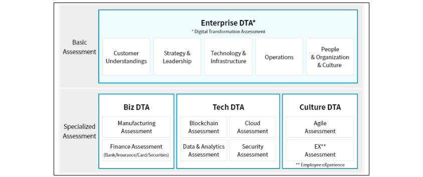 S-Core and Samsung SDS have been providing diagnostic services for these two digital levels since 2020: The Enterprise Digital Transformation Assessment (DTA) from the corporate-wide perspective and Specialized Diagnosis (Biz∙Tech∙Culture DTA) from the subject-specific perspective. You can easily check online via the link below.