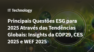 Vários tópicos foram amplamente discutidos em conferências e exposições globais. Embora as agendas detalhadas variem muito de acordo com a característica de cada evento, quatro tópicos principais foram destacados em relação ao ESG: uma transição para energia renovável, abordagem de desafios usando tecnologias, participação ativa do setor privado e soluções para desafios impostos pela IA.