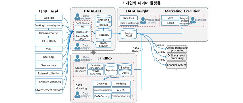 The general big data environment has been arranged for analysts (data scientists). However, the problem is its execution. It is no use if insights are produced based on sophisticated analysis of customers, but cannot lead to business practice. For example, if there is a precise prediction algorithm to find what product will be most preferred today for certain customers, it will take days to produce outcomes, or only analysts can access it. Then, it may hardly show great effects in the business environment. Therefore, the key to big data-based hyper-personalization is the platformization of the structure that connects data processes from ensuring stocking,and analyzing to running and deploying data.
