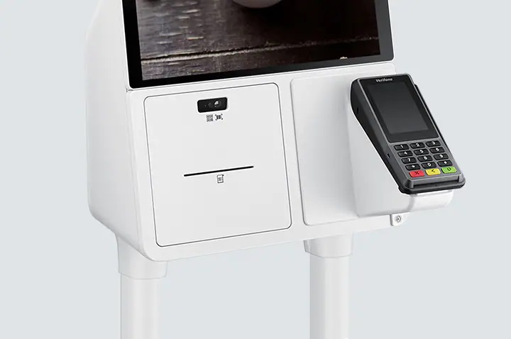 A máquina possui uma tela sensível ao toque, um sistema de pagamento sem contato seguro (opcional), um leitor de cartão, uma impressora de recibos, um scanner de QR code e código de barras e um processador poderoso. A tela é revestida com um filme especial certificado pelo Underwriters Laboratories, com propriedades antibacterianas de até 99,99% de eficácia.