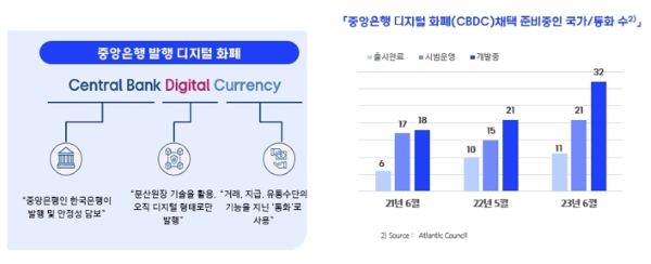 CBDC refers to a digital currency issued by a central bank, which is different from traditional currency in the way it is issued. From 2021 to 2023, the number of countries and currencies that have either launched, are piloting, or are developing blockchain-based CBDCs has continued to grow. In South Korea, the Bank of Korea established a pilot CBDC system in 2021, implementing the basic issuance, distribution, and redemption processes. In 2022, they conducted tests linking the CBDC pilot system with financial institutions. In 2024, a real transaction test using digital vouchers is planned for 100,000 participants. Digital vouchers apply digital currencies to existing voucher systems, which have been prone to fraudulent or illegal activities. Therefore, applying a blockchain-based digital currency to these vouchers is considered the most suitable approach to enhance transparency. If the performance and effectiveness of the digital voucher market are confirmed, the use of digital currencies could expand significantly.