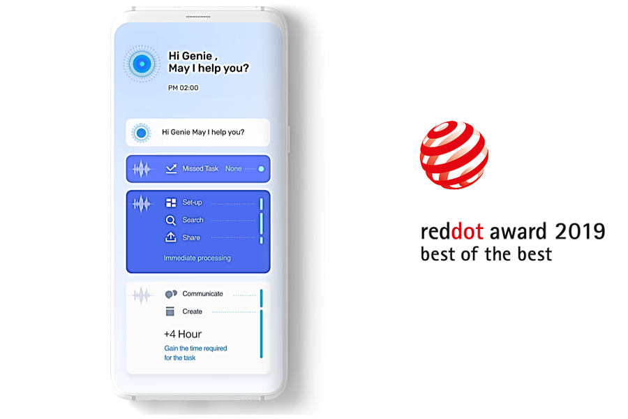 Quanto ao motivo do prêmio, Red Dot disse: "O Assistente Pessoal Virtual da Samsung SDS não apenas aplicou de forma criativa a experiência do usuário em seu design de tela, como também proporcionou mudanças inovadoras no futuro ambiente de trabalho, adotando inteligência artificial".