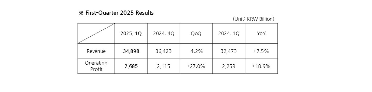 Samsung SDS unveiled its preliminary financial results for the first quarter of 2025, posting a revenue of KRW 3.4898 trillion and an operating profit of KRW 268.5 billion. Compared to the same period last year, the company’s revenue and operating profit rose by 7.5% and 18.9%, respectively.