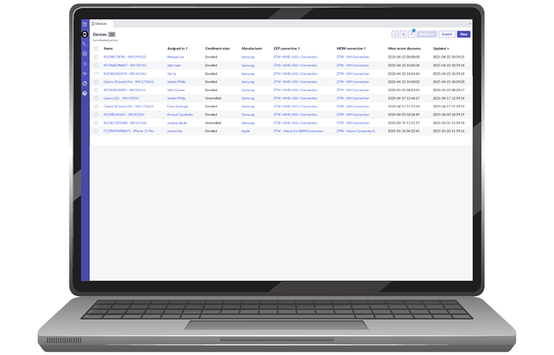 ZTM assigns the correct MDM profile to each device based on end-user eligibility. Device enrollment is embedded into the deployment process, and real-time enrollment status is tracked and displayed to help organizations stay compliant with internal policies and security standards.