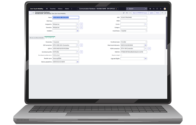 ZTM is natively built into the ServiceNow® platform, enhancing your mobility strategy with powerful Hardware Asset Management (HAM) features.